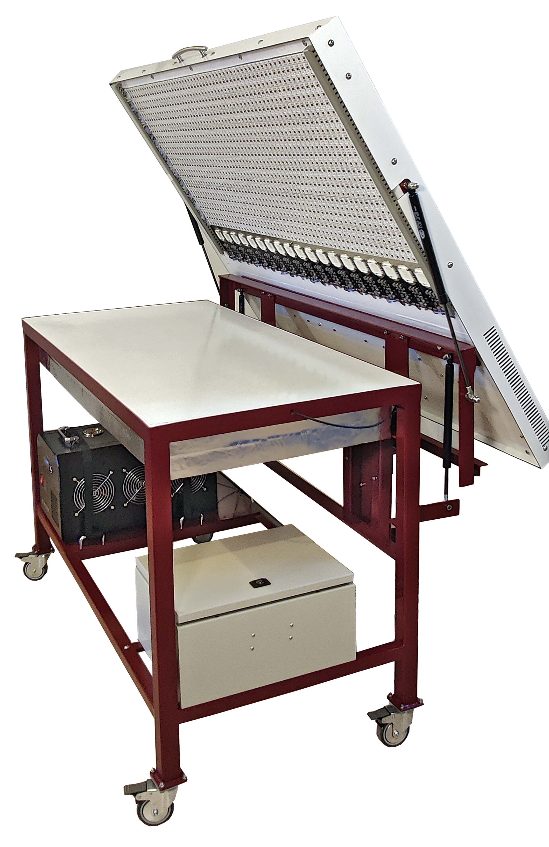 Gradient table with the light fixture lid opened (distance from lid to work surface is adjustable).